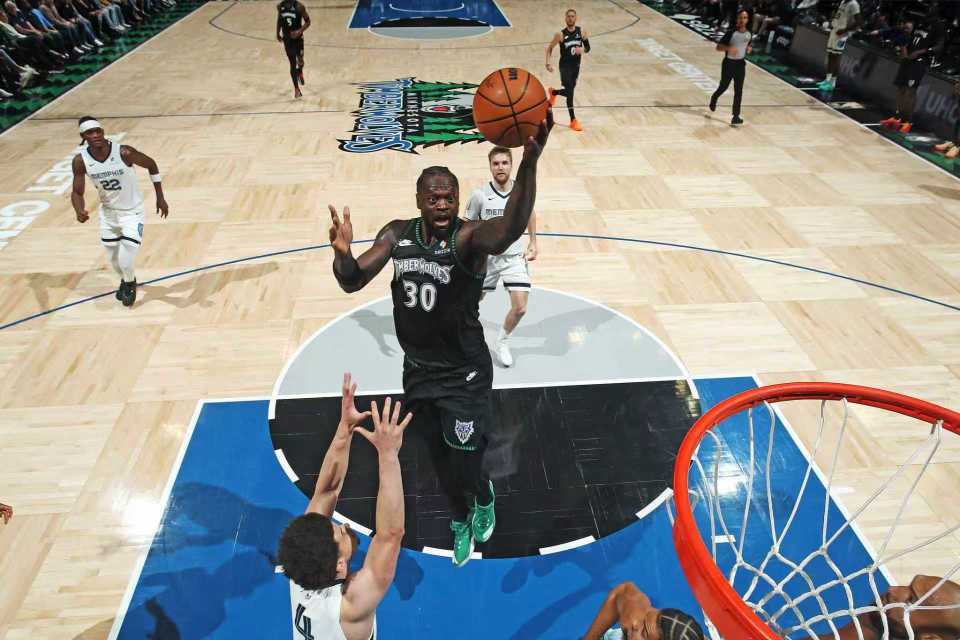 森林狼:戈贝尔、兰德尔、麦克丹尼尔斯、迪文琴佐、爱德华兹